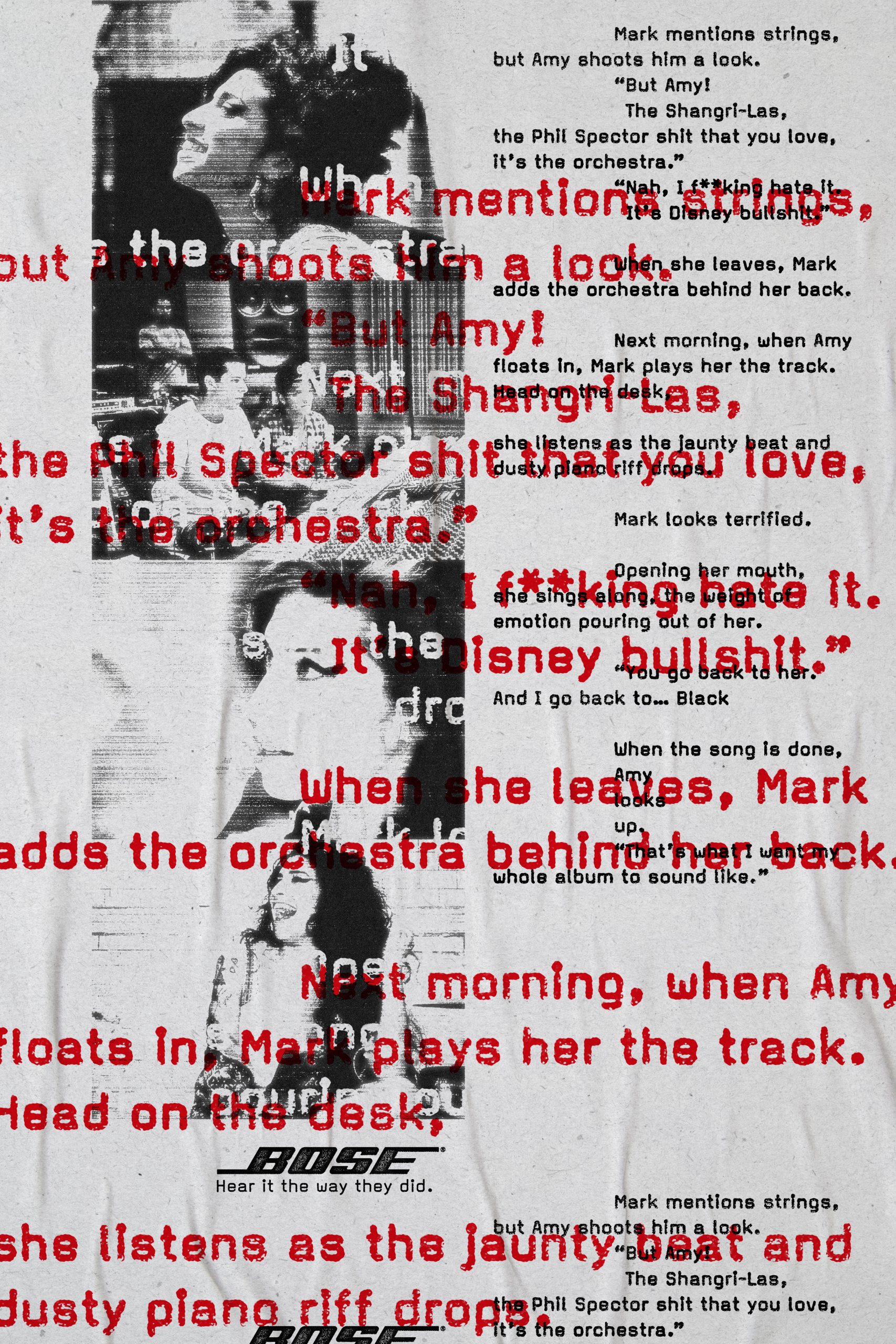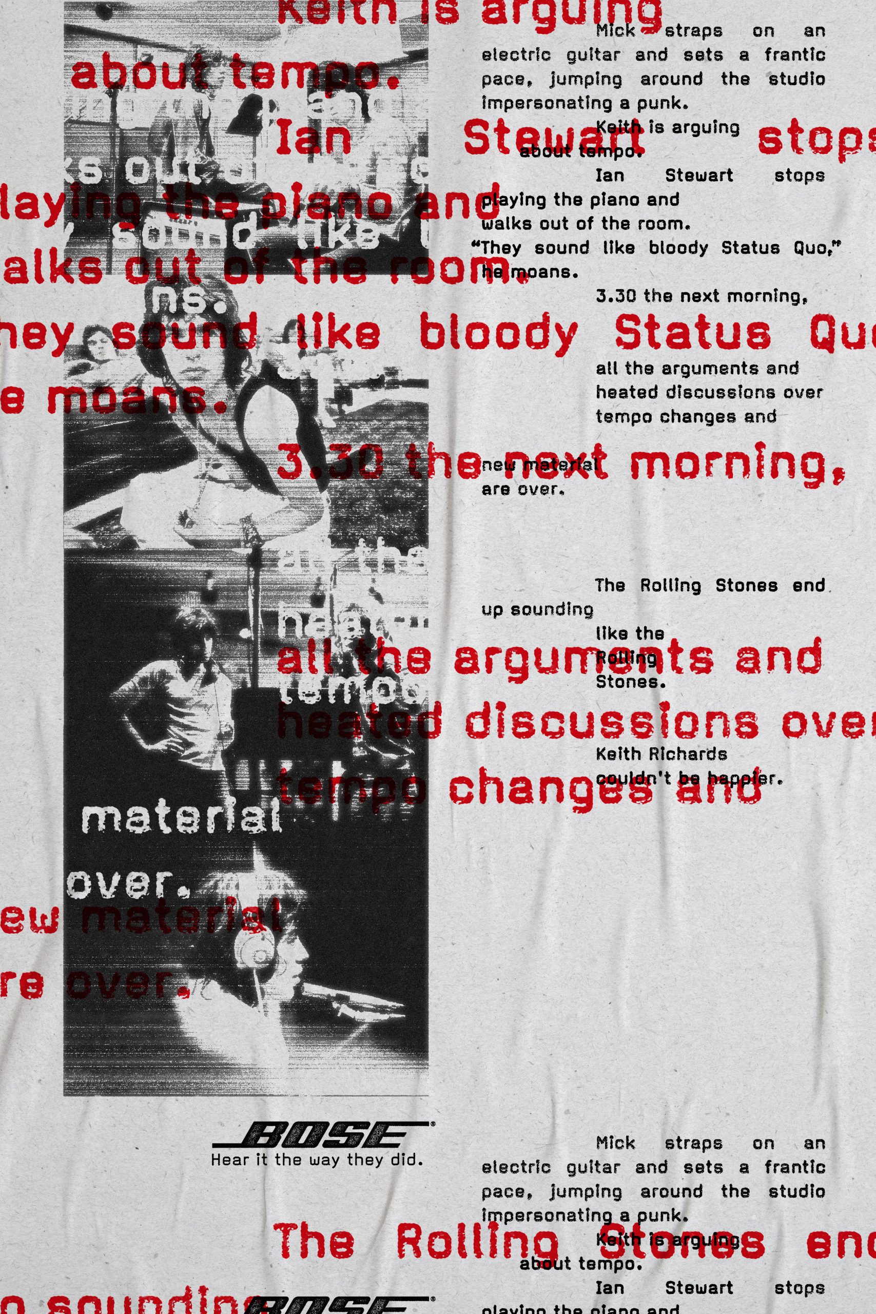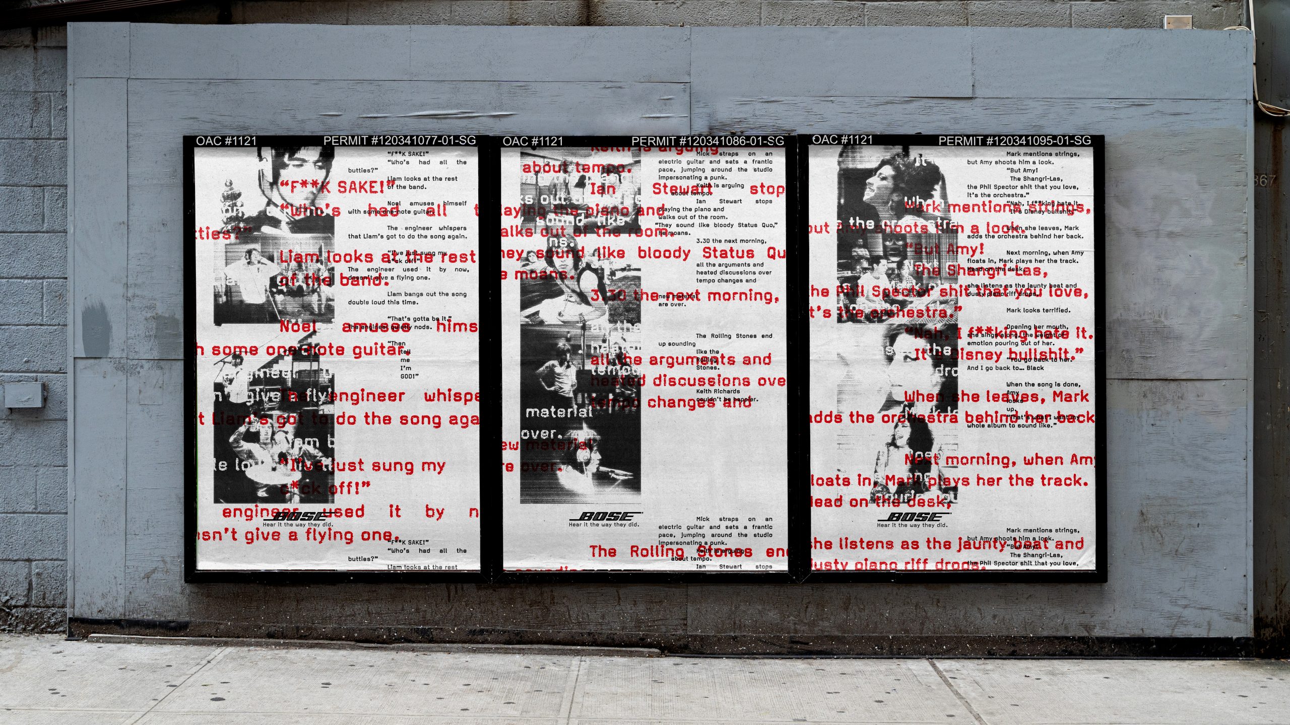 Sound moves, transports, and brings us to life. At Bose, this belief drives the creation of immersive audio tools that deliver music exactly as artists intended. For this campaign, treated archival photographs of Oasis, Amy Winehouse, and The Rolling Stones, in studio settings, were used to evoke raw authenticity and inject energy and drama. The result was a powerful, instantly accessible visual narrative that mirrors Bose’s commitment to crafting audio experiences that place you right in the room, feeling every note as the artist intended.