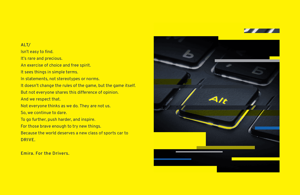 Lotus didn't want another predictable sports car campaign for the launch of the new Emira. They wanted to completely subvert the category and carve out something genuinely different. The approach was simple: forget the channels and focus on the content. Speaking directly to a new breed of maverick, those enthusiasts who understand what Lotus represents. Those who appreciate proper engineering, who see beauty in purposeful design, and who refuse to follow the herd. The campaign culminated in a launch film that captured not just the Emira's stunning looks, but the rebellious spirit of those brave enough to choose a different kind of sports car.