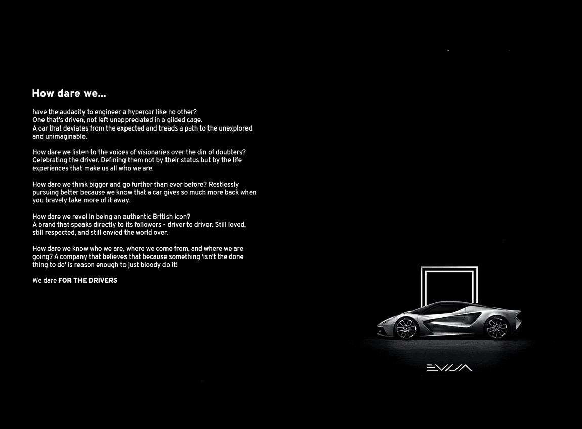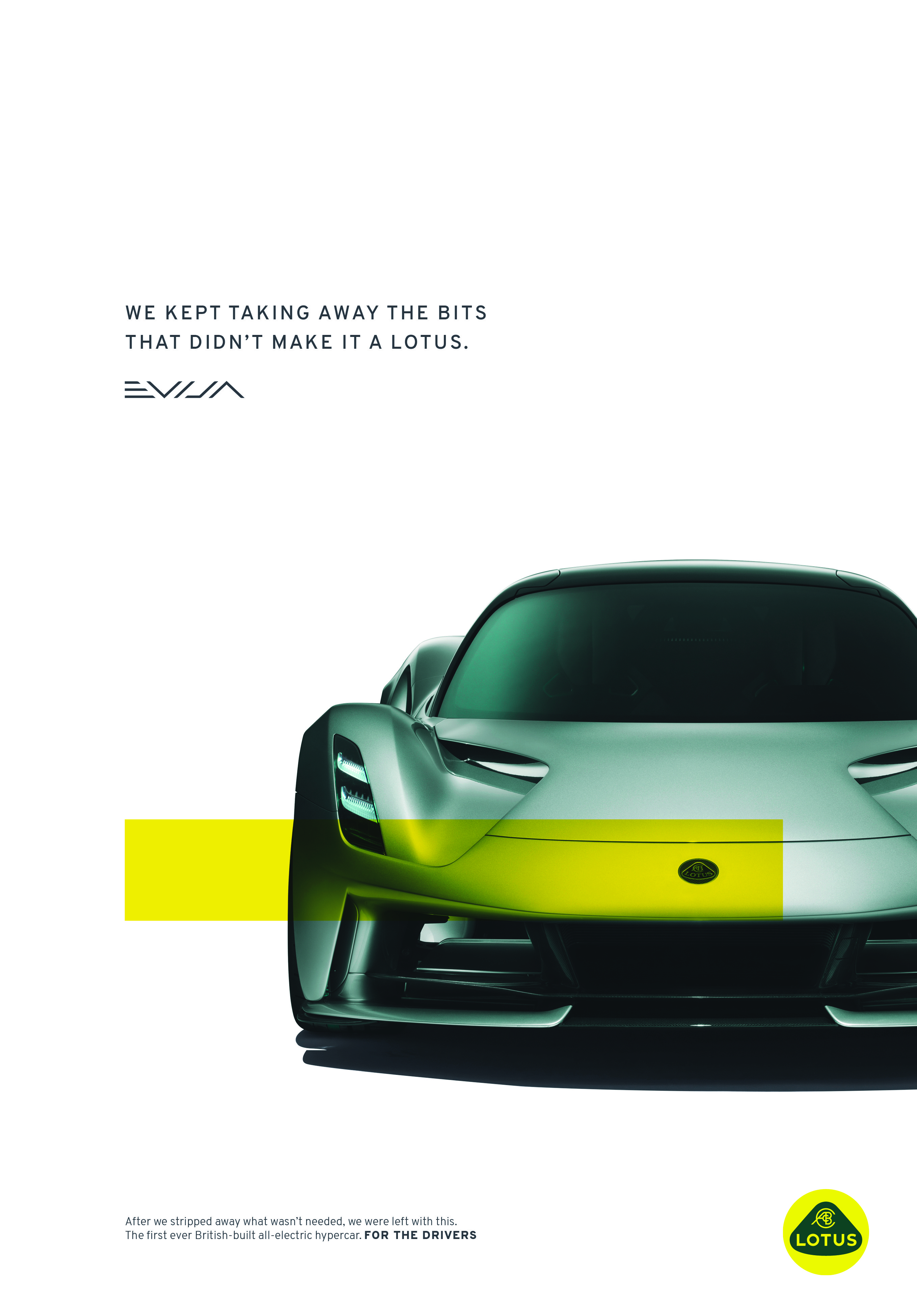 For over 70 years, Lotus has been an iconic British brand, seen by enthusiasts as the ‘purest’ sports car in the world. With new ambitions, the brand sought to broaden its appeal to a more luxury audience to stimulate sales of its existing range, as well as the new cars in the pipeline, particularly the £ 1.6 million Hypercar, Evija. Embracing the philosophy of the founder, Colin Chapman, the maverick character of the brand was embedded into a new vision/mission statement, as well as OOH, Shanghai Motor Show films, the website, ‘dazzles’, and stand designs, alongside activity on social media platforms. For one reason only - FOR THE DRIVERS.