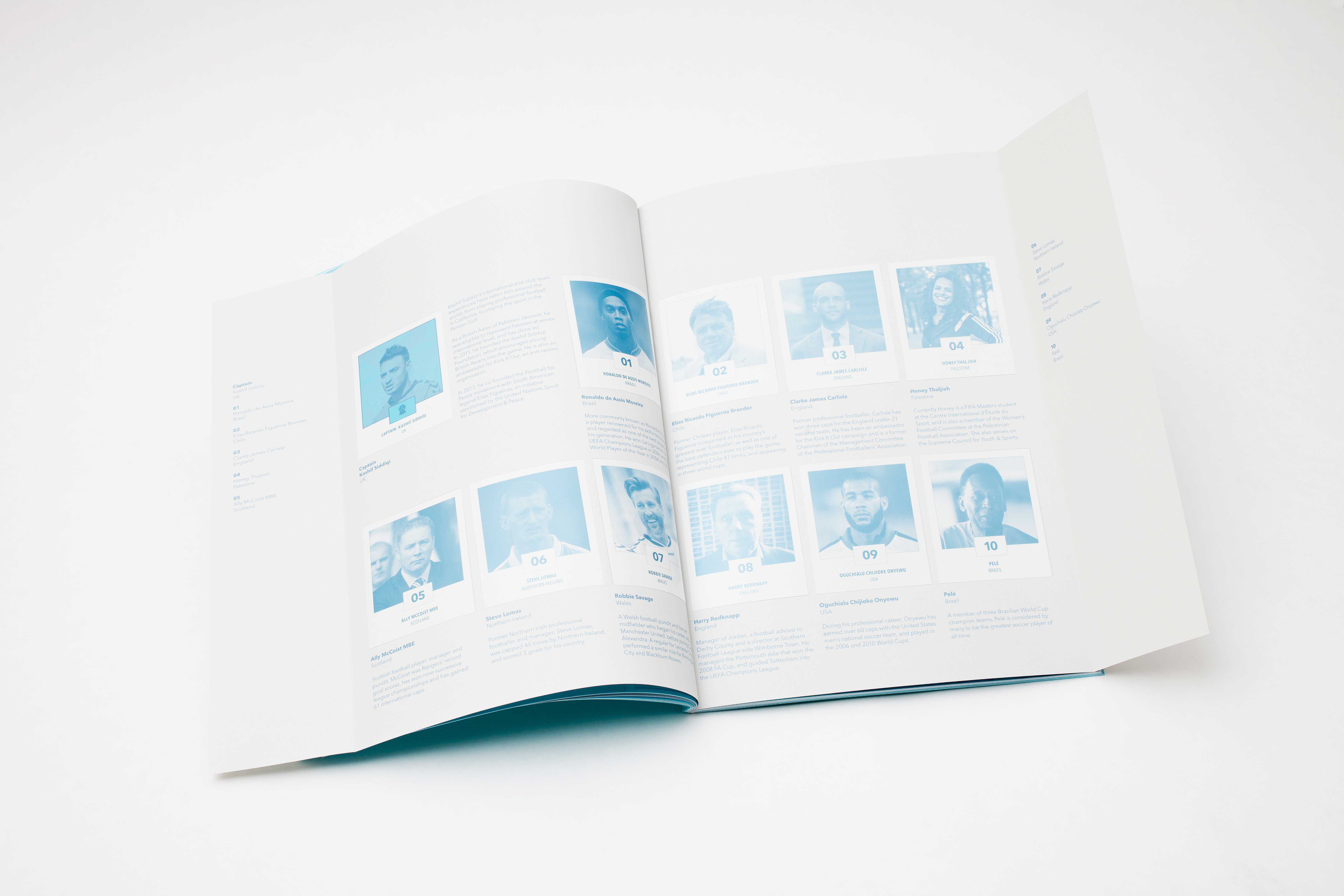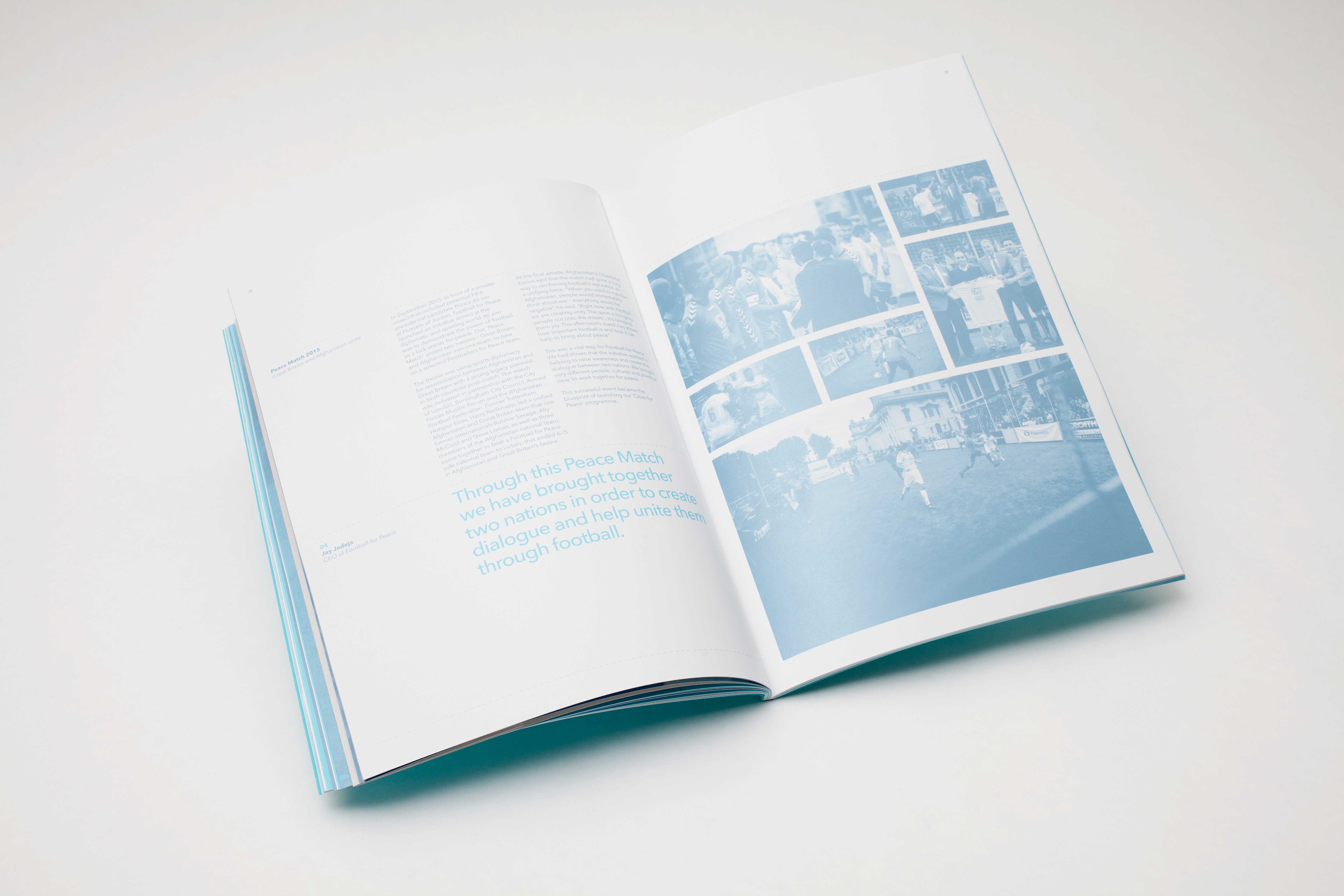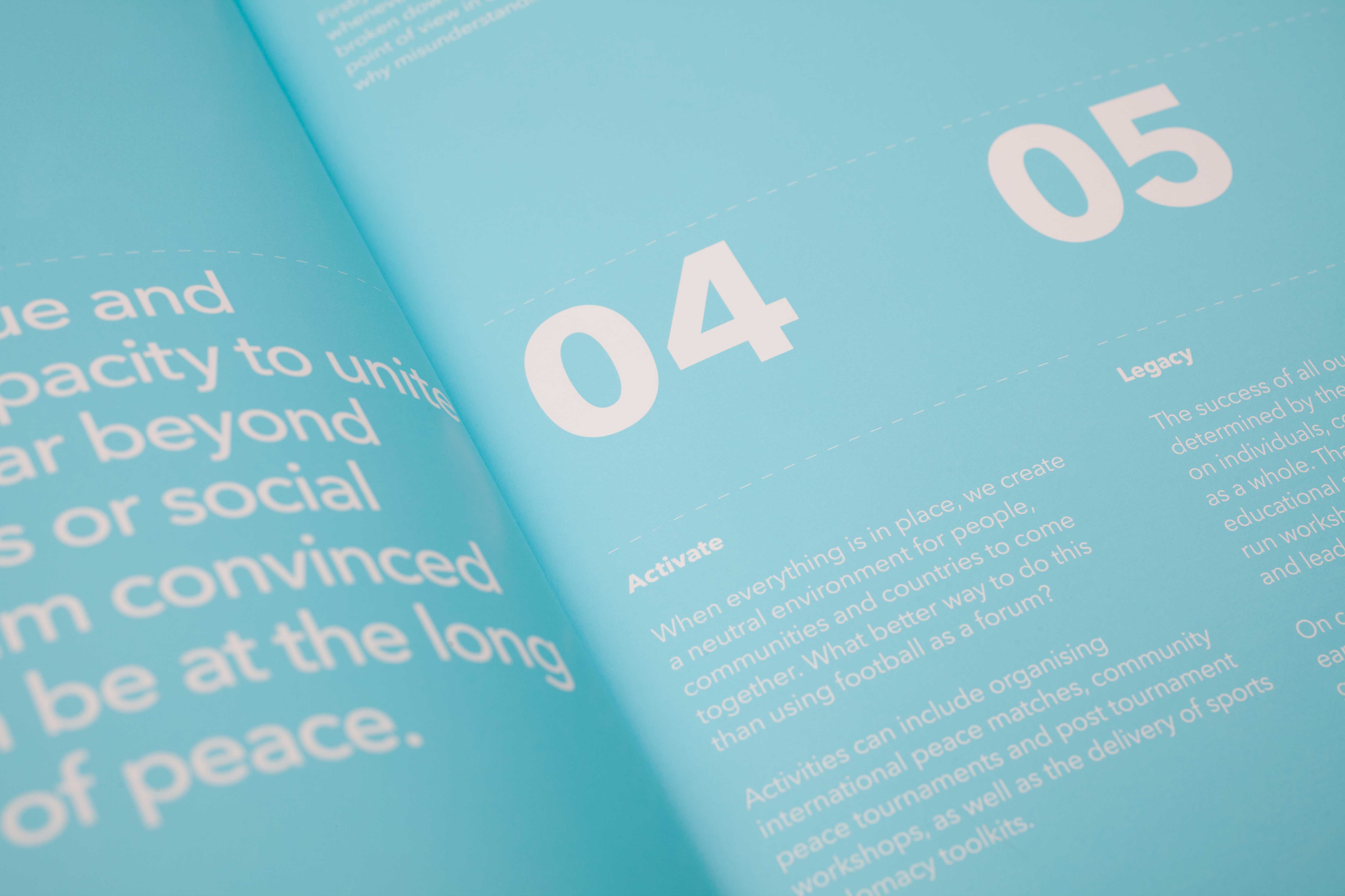 Millions live on the margins. Stereotyped. Misunderstood. Silenced.The charity organisation, Football for Peace, steps into the void where dialogue has collapsed. Working with governments, federations, and communities, they use football to bridge divides and rebuild understanding in fractured places.The sales brochure tells their story through successful initiatives across the world. Inspired by Andrew Edwards' 'All Together Now' sculpture that captures the WW1 Christmas Day truce, it echoes a powerful truth: even enemies can find common ground.Inside, collectable Panini-style stickers feature legends like Pelé and Ronaldinho—the faces of Football for Peace's international team, proving the beautiful game belongs to everyone.