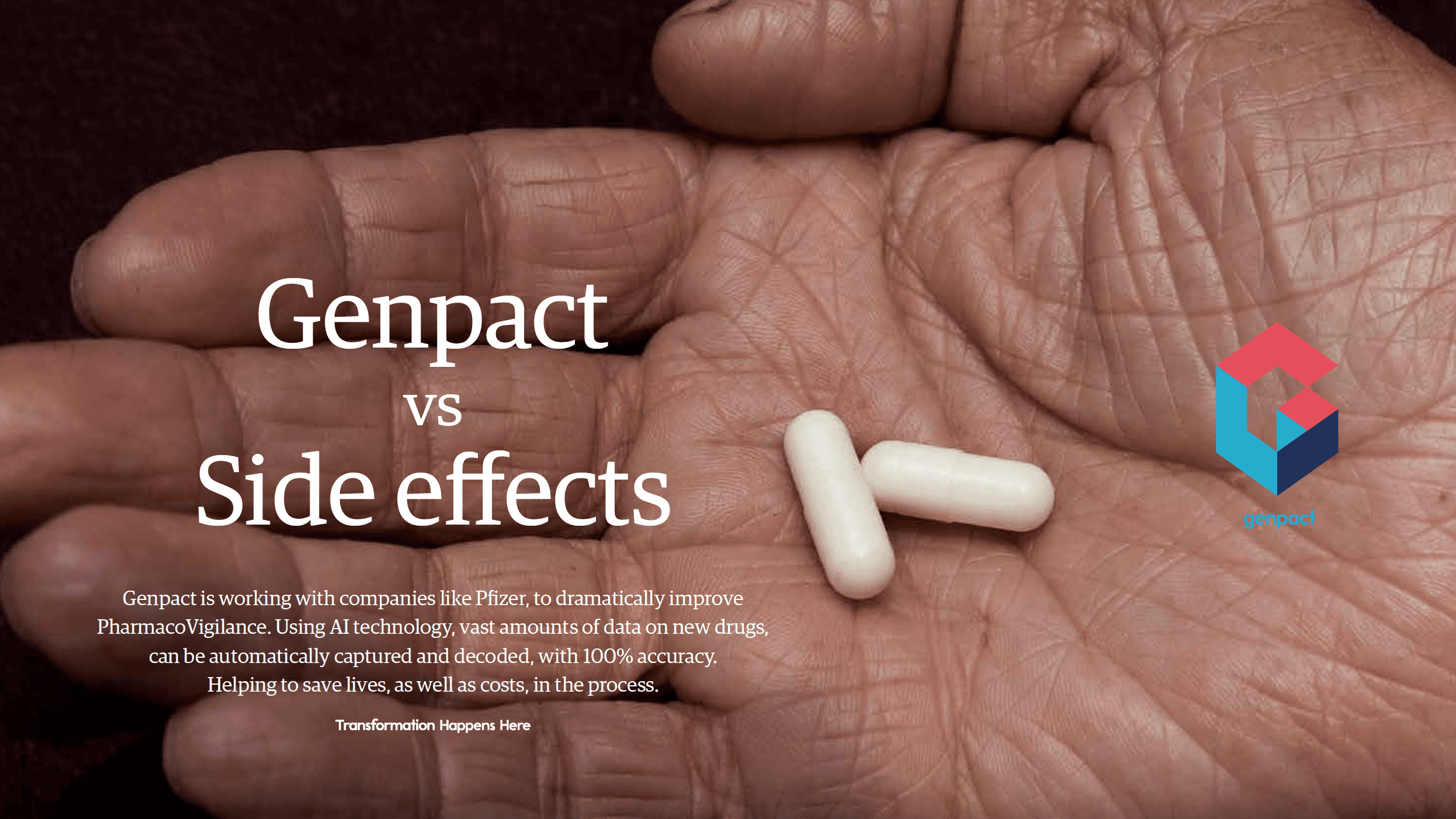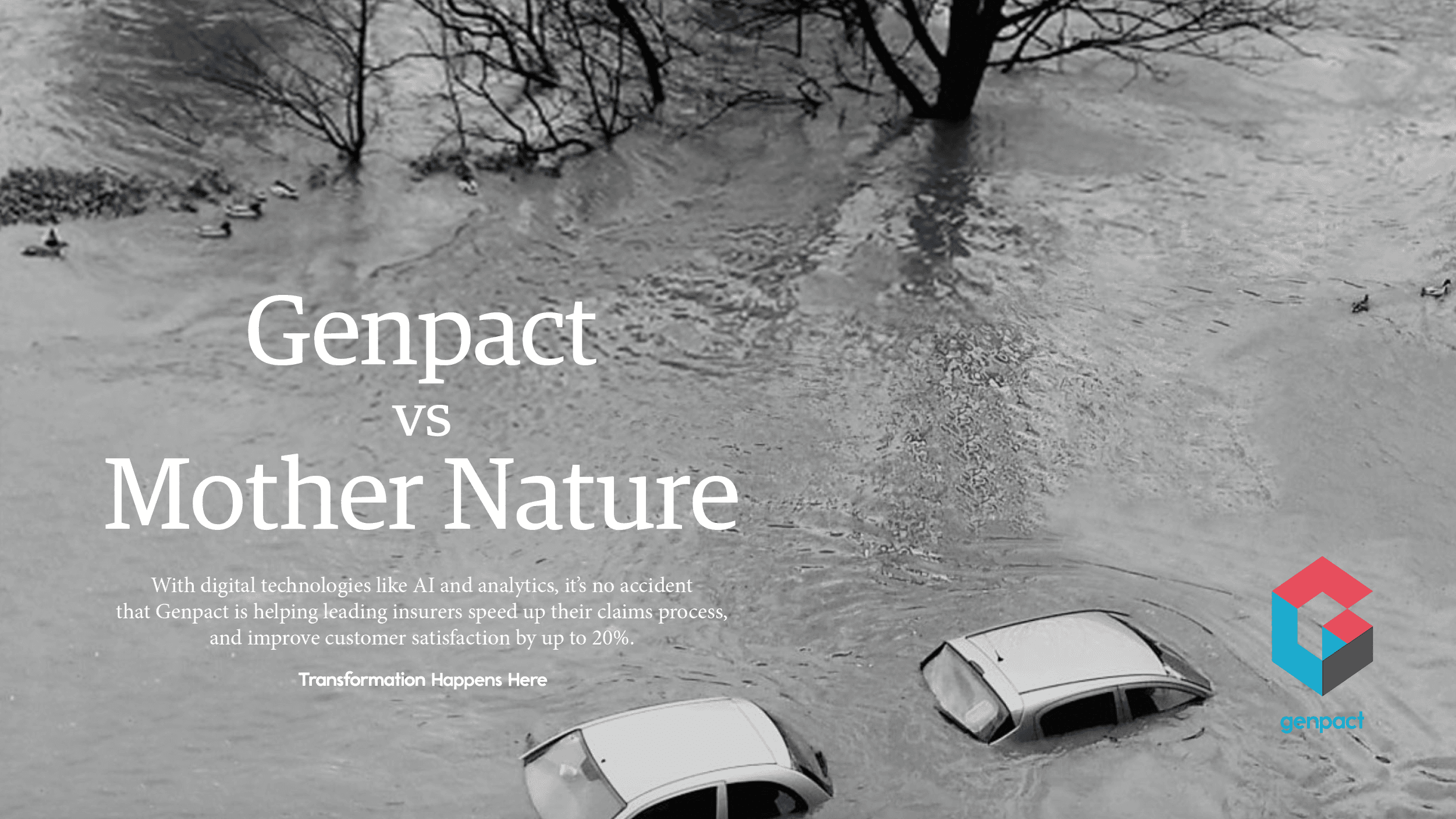 Genpact drives digital transformation for global companies, running thousands of complex processes that give them a competitive edge. Yet they're mostly invisible in the space they dominate. Seen as cost-cutters, not innovators. Awareness is growing, but recognition lags far behind its impact. The challenge was to make digital transformation tangible across every industry. 'Genpact vs' met it head-on. The campaign showed their technology solving real problems: drones speeding up insurance claims, analytics cutting through pharmaceutical trial data mountains. Every industry. Every challenge. Genpact solutions could take them on.